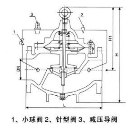 限流止回閥安裝于水泵出口,在單泵啟動和非全數(shù)設計工作泵工作時,對工作泵起限制流量作用,使泵在較高效率狀態(tài)下工作;防止電動機在水泵低揚程、大流量、低效率時,發(fā)生過載現(xiàn)象;防止超額定電流燒電機現(xiàn)象的發(fā)生,同時起到一定的節(jié)能效果。其限流原理為:依據(jù)水泵的設計工況點揚程,導閥自動檢測并控制水泵的實際工作揚程,以限制水泵的工作流量,限制電機的負載。