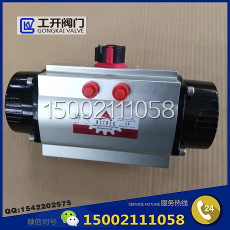 當壓縮空氣從A管咀進入氣動執(zhí)行器時,氣體推動雙活塞向兩端(缸蓋端)直線運動,活塞上的齒條帶動旋轉軸上的齒輪逆時針方向轉動90度,閥門即被打開。此時氣動執(zhí)行閥兩端的氣體隨B管咀排出。反之,當壓縮空氣從B官咀進入氣動執(zhí)行器的兩端時,氣體推動雙塞向中間直線運動,活塞上的齒條帶動旋轉軸上的齒輪順時針方向轉動90度,閥門即被關閉。此時氣動執(zhí)行器中間的氣體隨A管咀排出。以上為標準型的傳動原理。根據(jù)用戶需求,氣動執(zhí)行器可裝置成與標準型相反的傳動原理,即選準軸順時針方向轉動為開啟閥門,逆時針方向轉動為關閉閥門。單作用(彈簧復位型)氣動執(zhí)行器A管咀為進氣口,B管咀為排氣孔(B管咀應安裝消聲器)。A管咀進氣為開啟閥門,斷氣時靠彈簧力關閉閥門。
