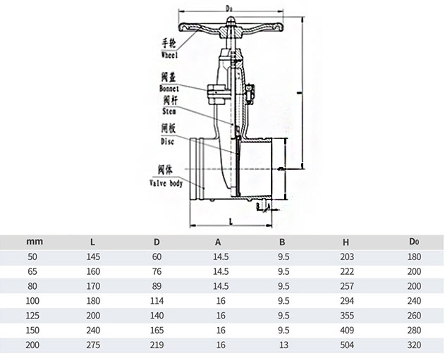| 閥體/閥蓋 | 閥桿 | 閘板 | 閥桿螺母 | 手輪 |