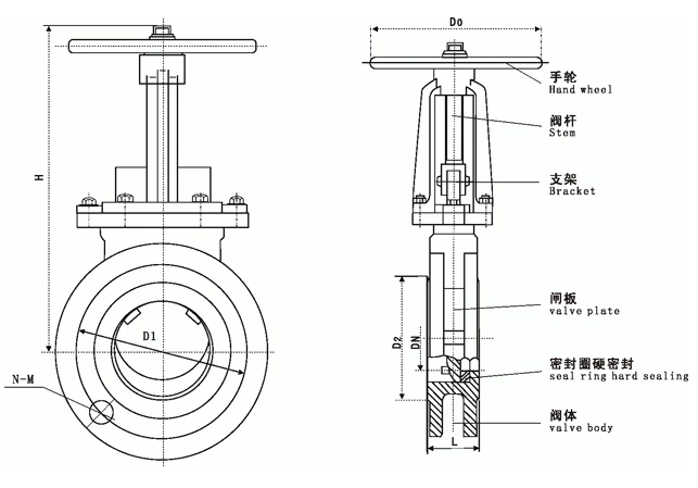 PZ73N襯聚氨酯刀閘閥結(jié)構(gòu)尺寸