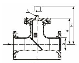 T型過濾器主要由殼體、濾芯、殼體法蘭、殼體法蘭蓋及緊固件等組成。當(dāng)流體通過進(jìn)口進(jìn)入殼體流經(jīng)置有一定規(guī)格絲網(wǎng)的濾芯后,其固體雜質(zhì)顆粒被阻擋在濾芯內(nèi),而潔凈的流體通過濾芯,由過濾器出口流出。當(dāng)需要清洗時(shí),只需打開下端排污口排凈流體,拆卸殼體法蘭蓋,拿出濾芯清洗后重新裝入即可。