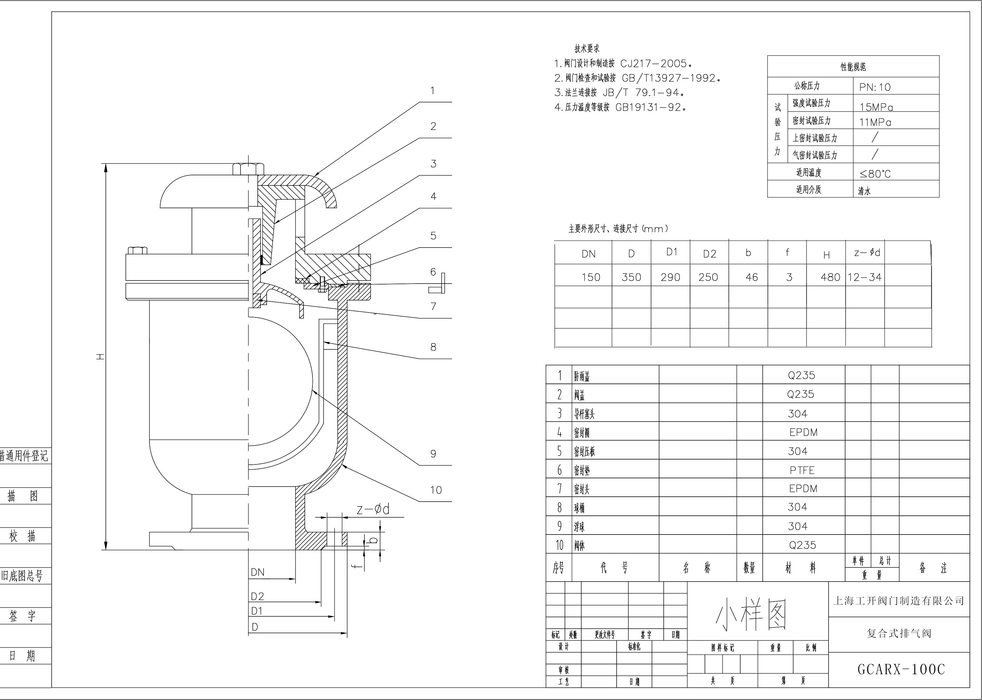 排氣閥圖紙-復(fù)合式排氣閥-高壓排氣閥-給水排氣閥-自動排氣閥