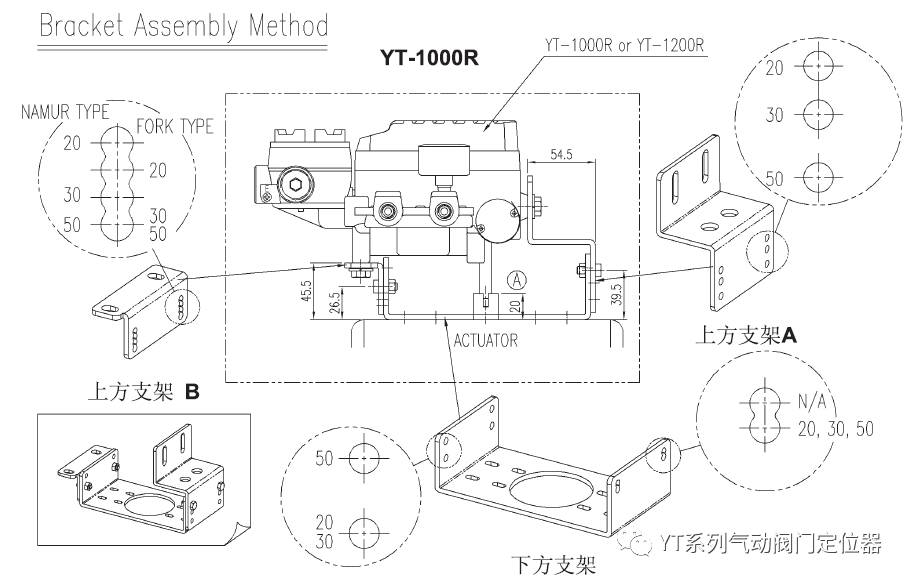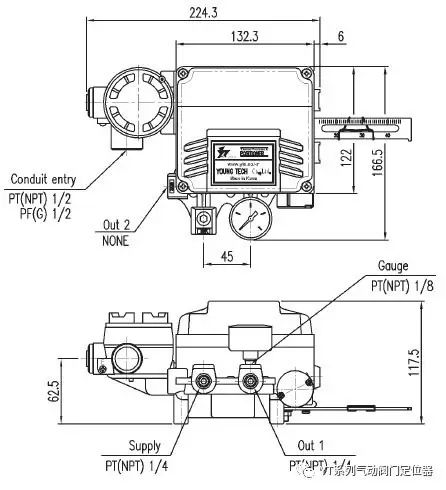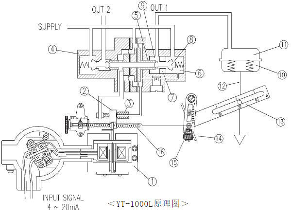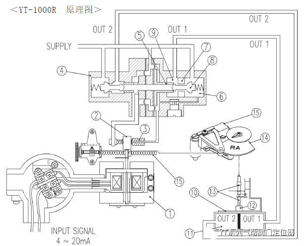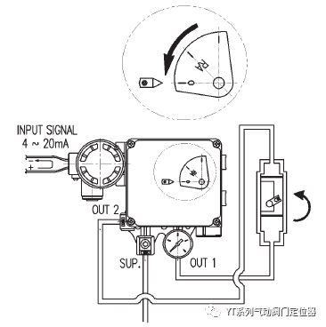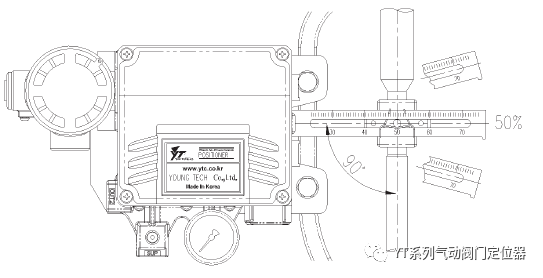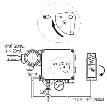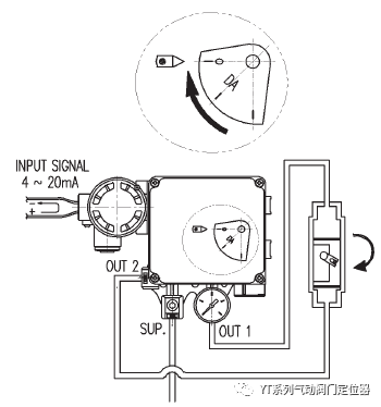 (1)確認(rèn)執(zhí)行機構(gòu)和定位器的動作方式。YT-1000 系列定位器是隨著輸入信號增加出口1的壓力增加 按這個原理要正確連接氣路。并且根據(jù)這個原理 正作用執(zhí)行機構(gòu)熾程調(diào)節(jié)件要安裝在正作用位罰,反作用的執(zhí)行機構(gòu)址程調(diào)節(jié)件要安裝在反作用位貍。