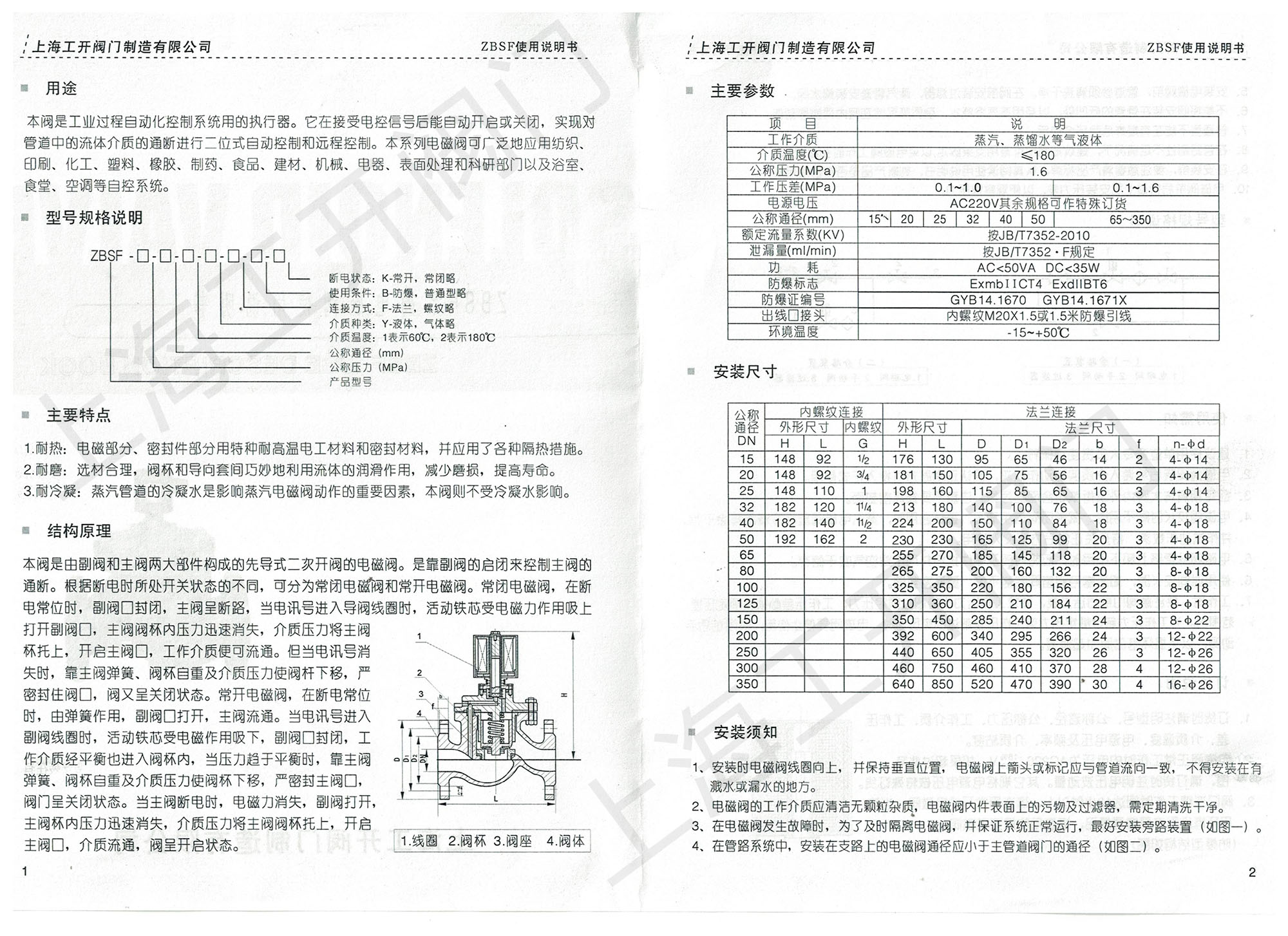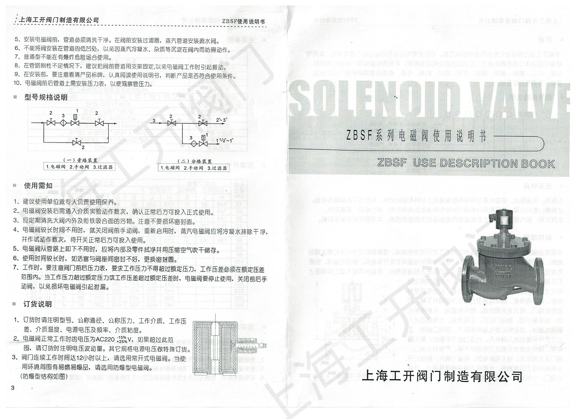 ZBSF電磁閥說明書上海工開閥門ZBSF電磁閥說明書