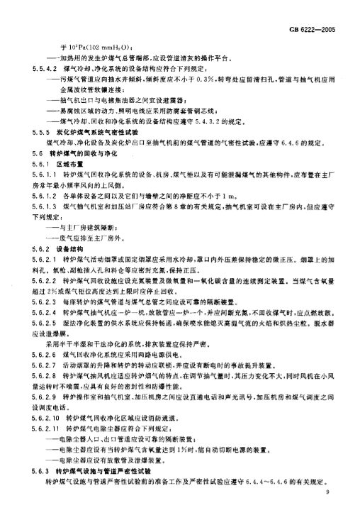 GB6222-2005《工業(yè)企業(yè)煤氣安全規(guī)程》