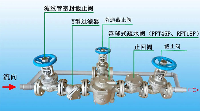 在安裝疏水閥時,必須確保疏水閥的流水箭頭方向與冷凝水的實際流向保持一致。