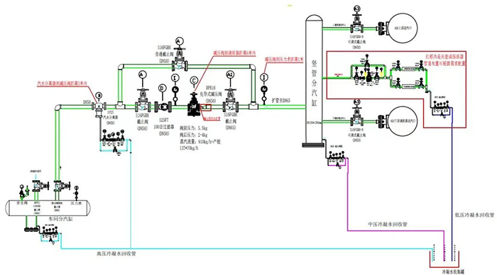 在冷凝水回收過程中,不同壓力等級的管線應(yīng)分別進行回收。