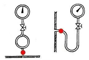 加壓力表彎的目的是: 保護(hù)表內(nèi)部傳動(dòng)機(jī)構(gòu)免受介質(zhì)溫度、介質(zhì)腐蝕性的損害。通常如果介質(zhì)有一定的腐蝕性必須加設(shè)壓力表彎,介質(zhì)的溫度大于60℃時(shí),必須加設(shè)壓力表彎。如壓力表安裝在潔凈的生活飲用水系統(tǒng)上,就無(wú)須加設(shè)。 還有降低震動(dòng)及沖擊的作用,對(duì)溫度較高介質(zhì)也起到一定散熱作用,以保護(hù)壓力表及降低壓力表溫度影響誤差。而部分壓力表接頭孔口處的阻尼螺釘,是通過(guò)減小流通面積的方式起到節(jié)流緩沖效果的 , 主要是對(duì)介質(zhì)壓力脈沖有用。