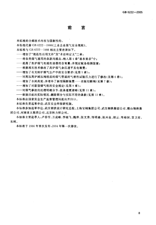 GB6222-2005《工業(yè)企業(yè)煤氣安全規(guī)程》