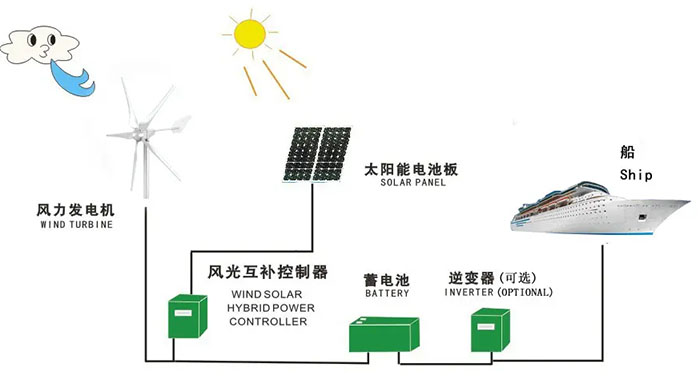 風(fēng)光互補(bǔ)發(fā)電系統(tǒng)主要由風(fēng)力發(fā)電機(jī)組、太陽能光伏電池組、控制器、蓄電池、逆變器、交流直流負(fù)載等部分組成。該系統(tǒng)是集風(fēng)能、太陽能及蓄電池等多種能源發(fā)電技術(shù)及系統(tǒng)智能控制技術(shù)為一體的復(fù)合可再生能源發(fā)電系統(tǒng)。