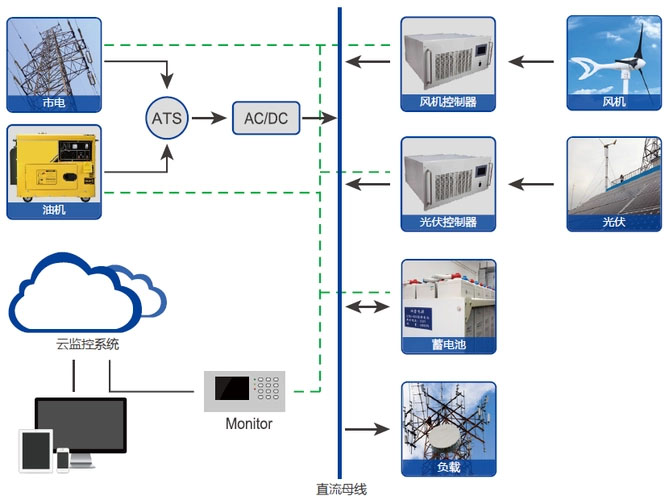 風(fēng)光互補(bǔ)發(fā)電系統(tǒng)是針對通信基站、微波站、邊防哨所、邊遠(yuǎn)牧區(qū)、無電戶地區(qū)及海島,在遠(yuǎn)離大電網(wǎng),處于無電狀態(tài)、人煙稀少,用電負(fù)荷低且交通不便的情況下,利用本地區(qū)充裕的風(fēng)能、太陽能建設(shè)的一種經(jīng)濟(jì)實用性發(fā)電站。