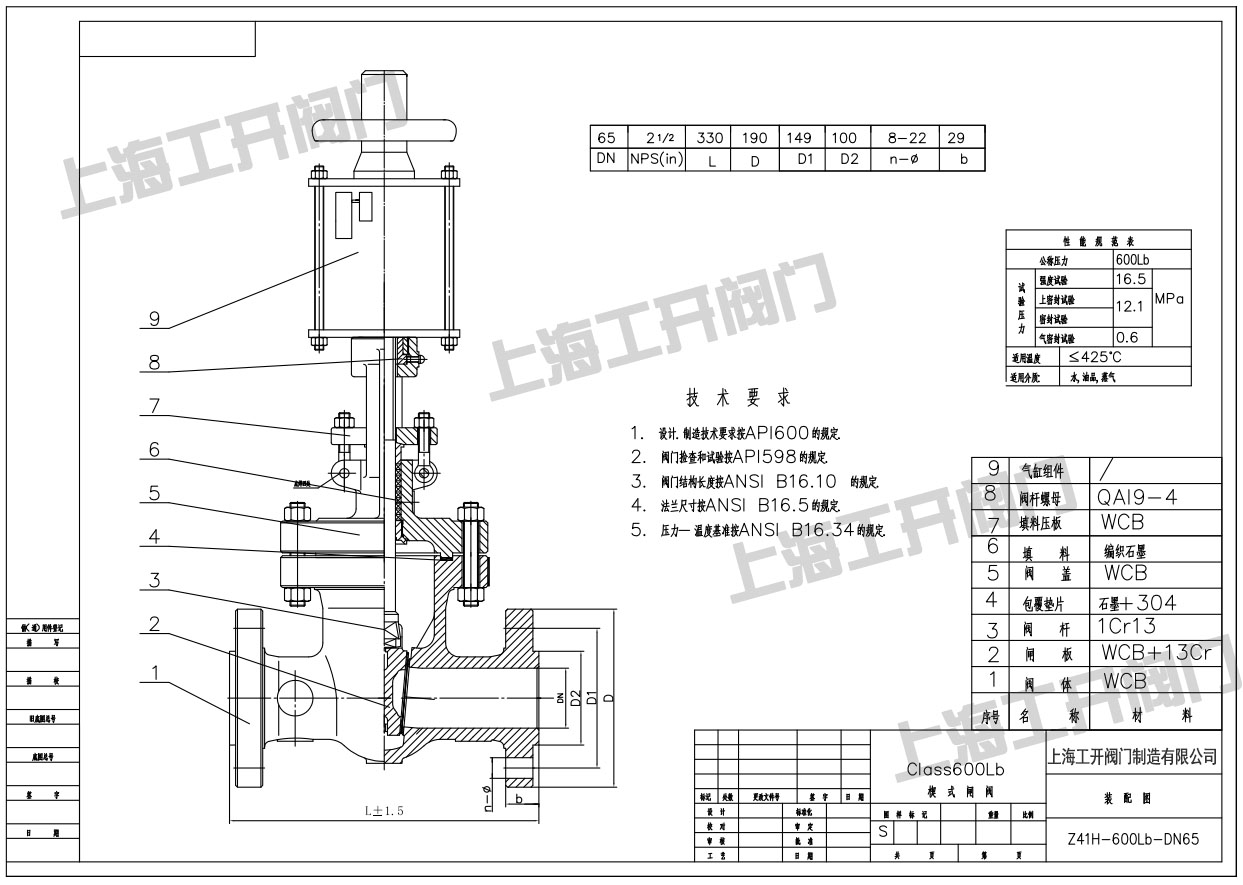 美標(biāo)閘閥Z41H-600LB-DN65-美標(biāo)閘閥圖紙