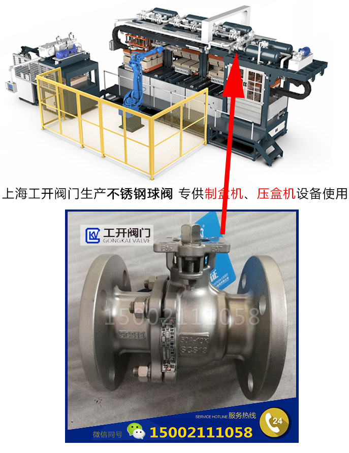制盒機(jī)(也叫壓盒機(jī))一種包裝機(jī)械設(shè)備,全智能和全自動半自動制盒機(jī)以及印后包裝所需的其他配套設(shè)備。廣泛應(yīng)用于各類精品包裝盒、手機(jī)盒、珠寶盒、化妝品盒、鞋盒、服裝盒、食品盒、酒盒以及其他精品盒的生產(chǎn)和制作。機(jī)器采用PLC+觸摸屏人機(jī)系統(tǒng),進(jìn)行吸漿時(shí)間、熱壓時(shí)間,平臺位置移 動…等生產(chǎn)參數(shù)設(shè)置。整機(jī)分為三部分組成:撈漿段,熱壓段,翻轉(zhuǎn)輸出 部分。撈漿段:將紙漿吸附在撈漿模上,再上升預(yù)壓,然后再移至熱壓段。熱壓段:將預(yù)壓濕坯轉(zhuǎn)移 到熱壓模具上,采用高溫?zé)釅?,干燥成形。翻轉(zhuǎn)輸出;取出熱壓好的產(chǎn)品,轉(zhuǎn)送到輸送帶上輸送產(chǎn)品并完工。上海工開閥門生產(chǎn)不銹鋼法蘭球閥/日標(biāo)球閥/美標(biāo)法蘭球閥專供制盒機(jī)包裝設(shè)備上使用。正常一臺設(shè)備上需配備十多臺不銹鋼球閥,制盒機(jī)球閥的操作方式可以選擇手動、氣動、電動都可以。