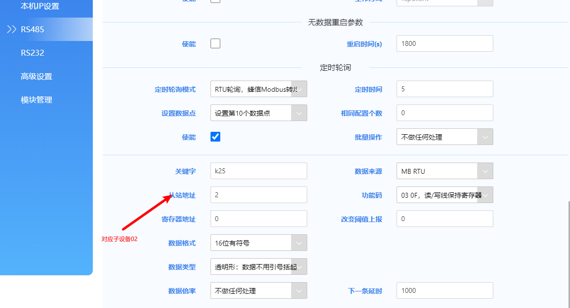 從站地址:需要與云平臺采集點模板的從機(jī)地址一致