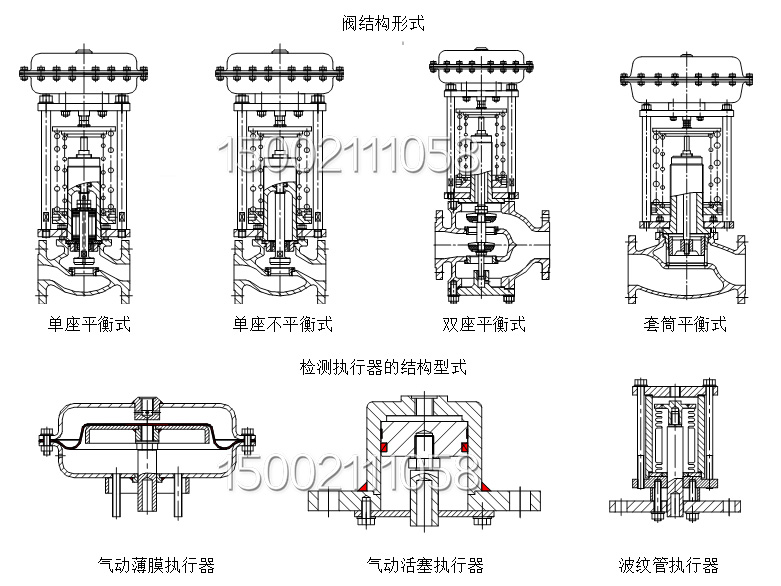 調(diào)壓閥主要有檢測執(zhí)行機(jī)構(gòu)、調(diào)節(jié)閥、冷凝器(蒸氣時)與閥后(或閥前)取壓管等四部分組成,其結(jié)構(gòu)見下圖。