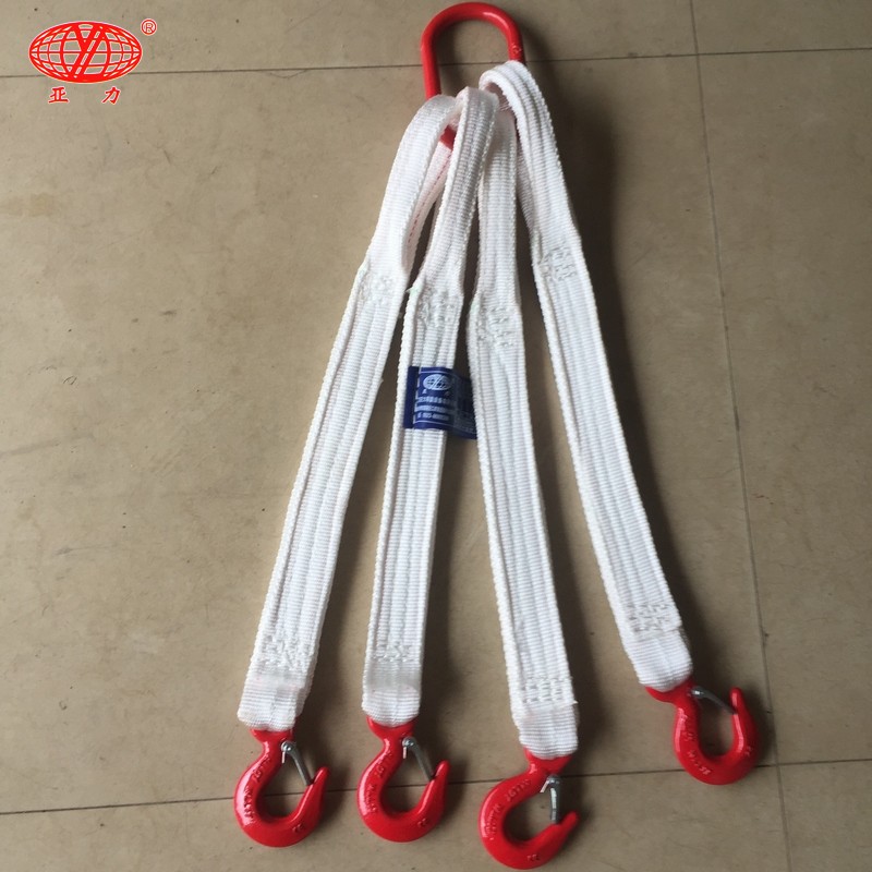 江蘇亞力生產(chǎn)定制白色丙綸扁平吊帶索具,四腿吊帶成套索具。標(biāo)準(zhǔn)安全系數(shù)4:1另可生產(chǎn)5:1、6:1。